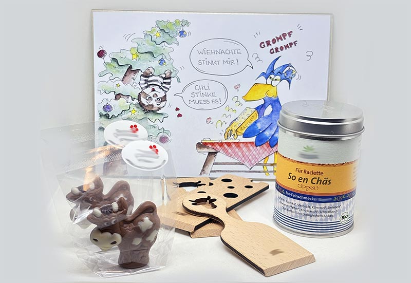 Hier kannst du eine Comic-Postkarte aus der Serie „Rigoloo & Relaxx“ bestellen. Mit Herz und Humor gestaltet. Du erhälst die Karte mit einem Couvert und einer Briefmarke (für die Schweiz), so musst du nur noch die Karte schreiben und ab zur Post!